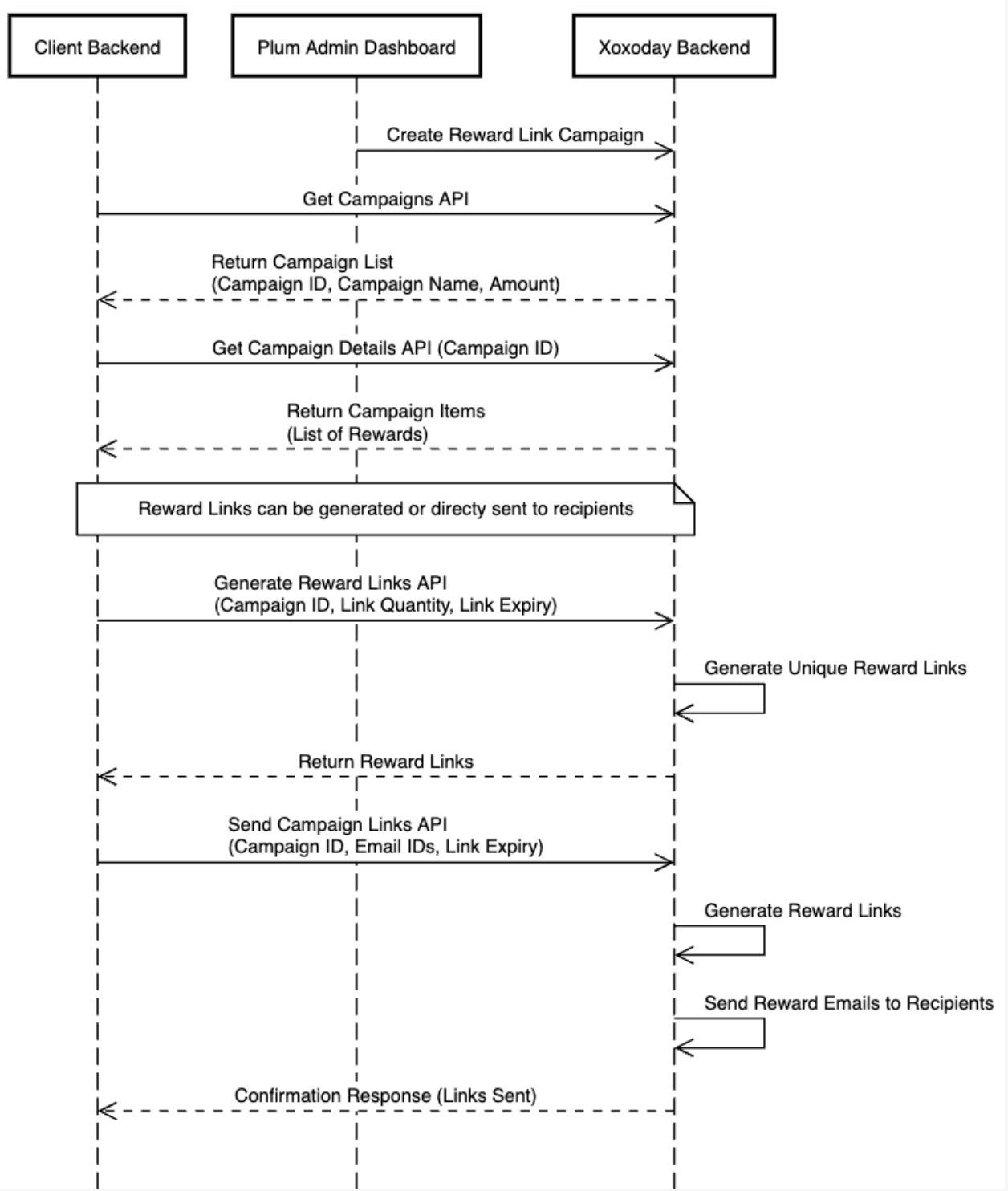 Reward LinksSuggest EditsWe’ll create both a sandbox account and a live product account for you. Once access is granted, you can: Log in to your Sandbox dashboard Create your API key Send your first Reward Link via API Standard Workflow for implementing Reward Links API Updated 3 days ago Ask AITable of Contents Standard Workflow for implementing Reward Links API